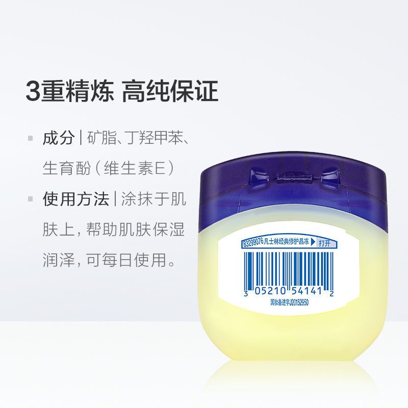 商品名称:凡士林经典修护晶套装保湿滋润防干燥防裂男女身体乳润唇膜50g*2