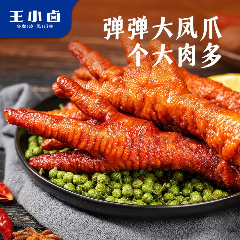 商品名称:王小卤105g*4虎皮凤爪网红宿舍休闲小零食解馋卤味鸡爪子食品爆款
