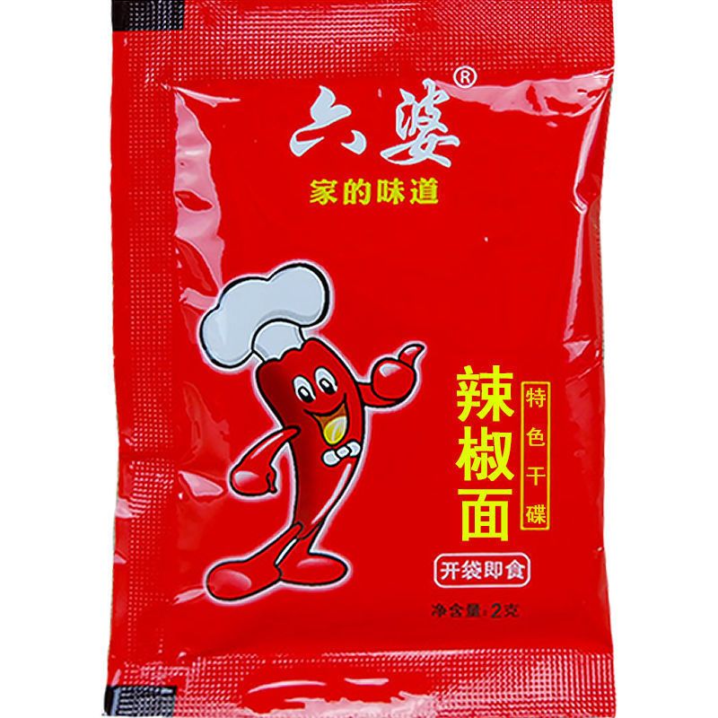 商品名称:六婆辣椒面2g*50袋小袋辣椒面烧烤串串钵钵鸡蘸料腌料家用商用